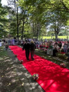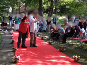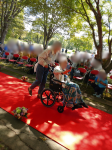 9月23日、世界遺産である御所野縄文遺跡公園を会場に共生社会の実現をめざしたファッションウォークを開催しました。主催は介護福祉学科教授である柏葉英美が代表の「いちのへチームオレンジさくらの会」と一戸町で、後援は八戸学院大学短期大学部、岩手県、岩手県介護福祉士会で開催したものです。オープニングは、一戸中学校と金田一中学校の吹奏楽の演奏で会場は盛り上がり、続くファッションウォークでは、介護・福祉職と高齢者、障がいのある方、家族での参加やお友達同士の参加など笑顔のファッションウォークとなりました。